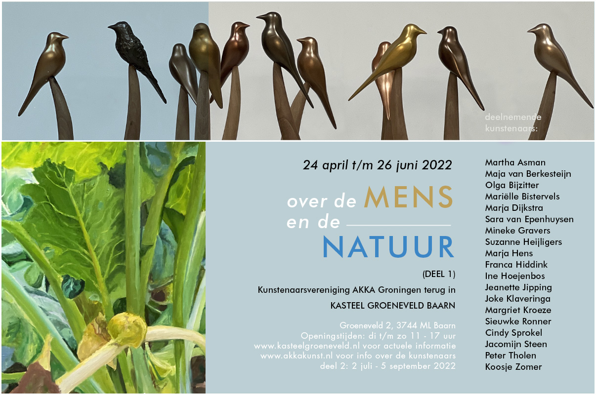 over de MENS en de NATUUR………expositie in Kasteel Groeneveld Baarn met kunstenaarsvereniging AKKA van 24/4 t/m 26/6